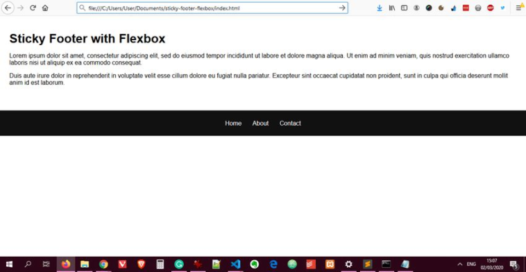 Flexbox is a great layout module to implement simple and complex layouts and functionalities alike. It’s a good idea to create a sticky footer even if you don’t think you might need it, as some users might use a huge screen on which the page can easily run out of content. With flexbox, it’s really just a few lines of extra code and takes only a minimal effort.