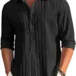 1.Men’s Casual Button Down Shirts Long Sleeve Linen Shirt Fashion Textured Beach Summer Shirt